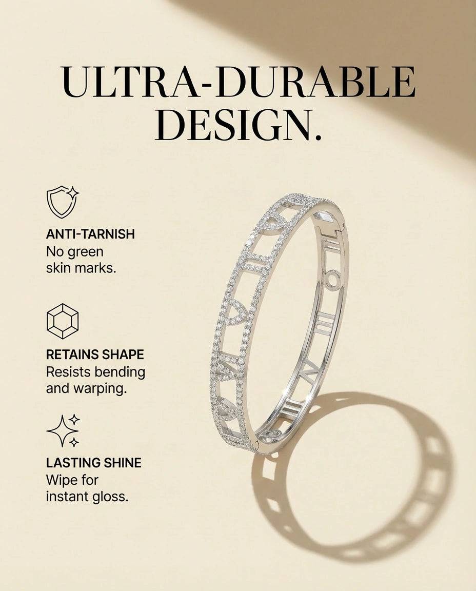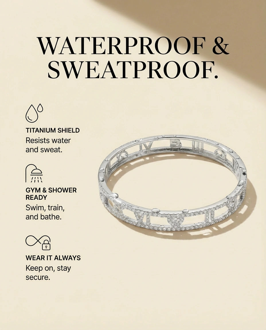Water-ready, tarnish and scratch resistant, preserving its refined shine over time.
