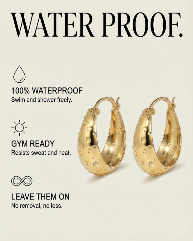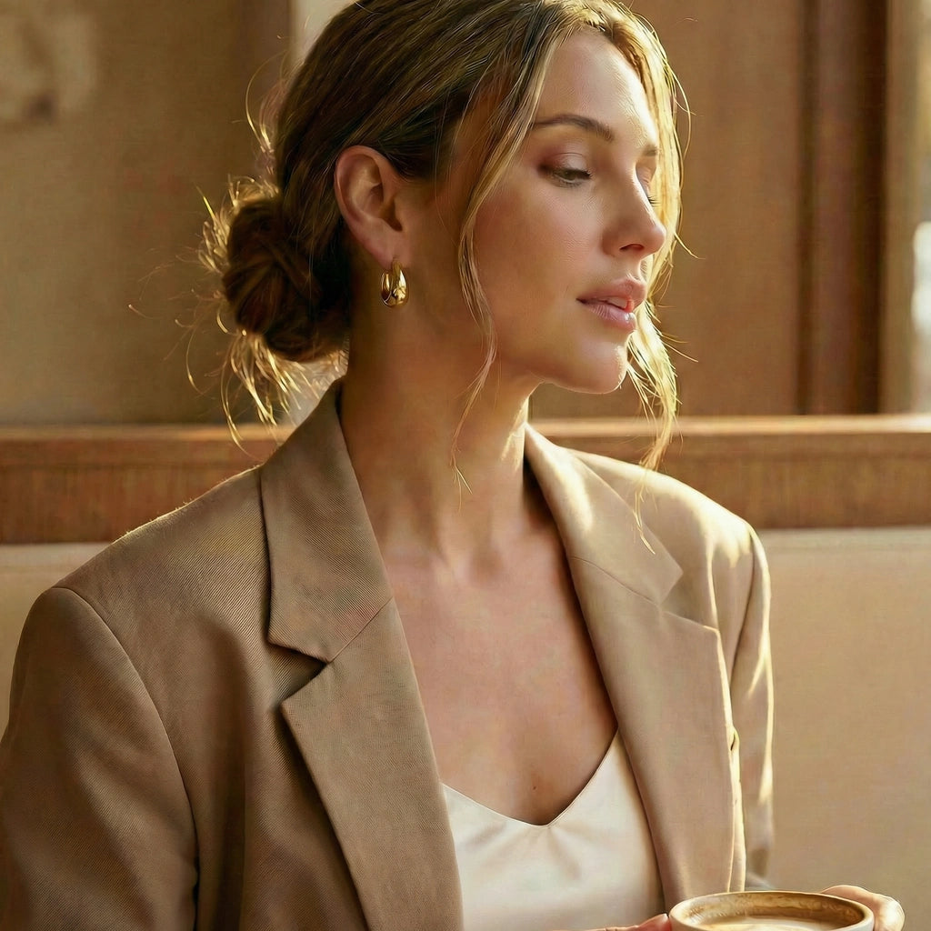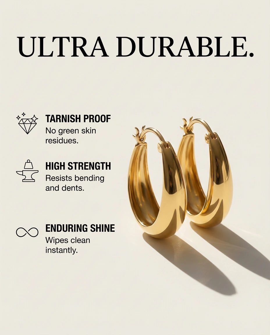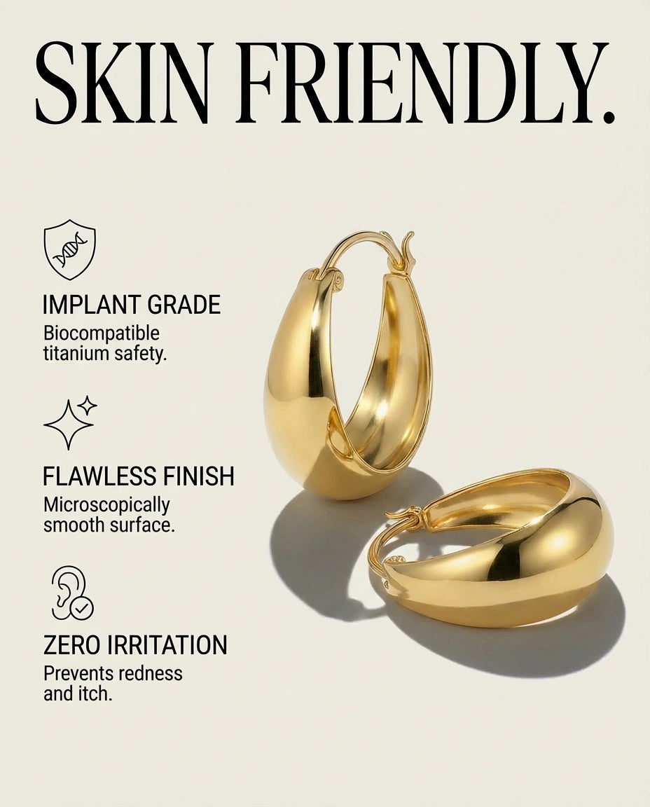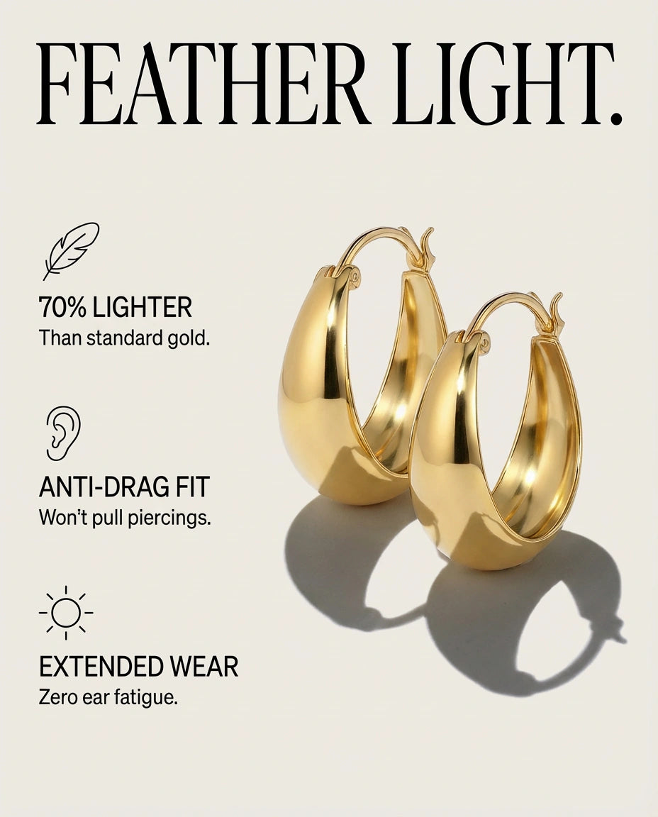 Lunar Silhouette: Sculpted crescent hoops with a bold, domed profile—minimal yet luminous.