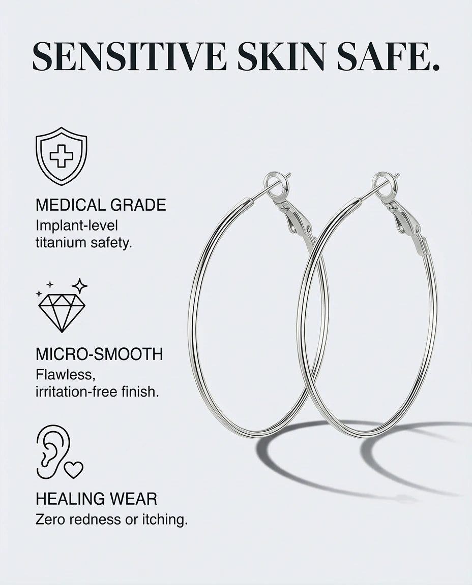 Hypoallergenic, ultra‑light titanium with a secure click‑lock for all‑day comfort.