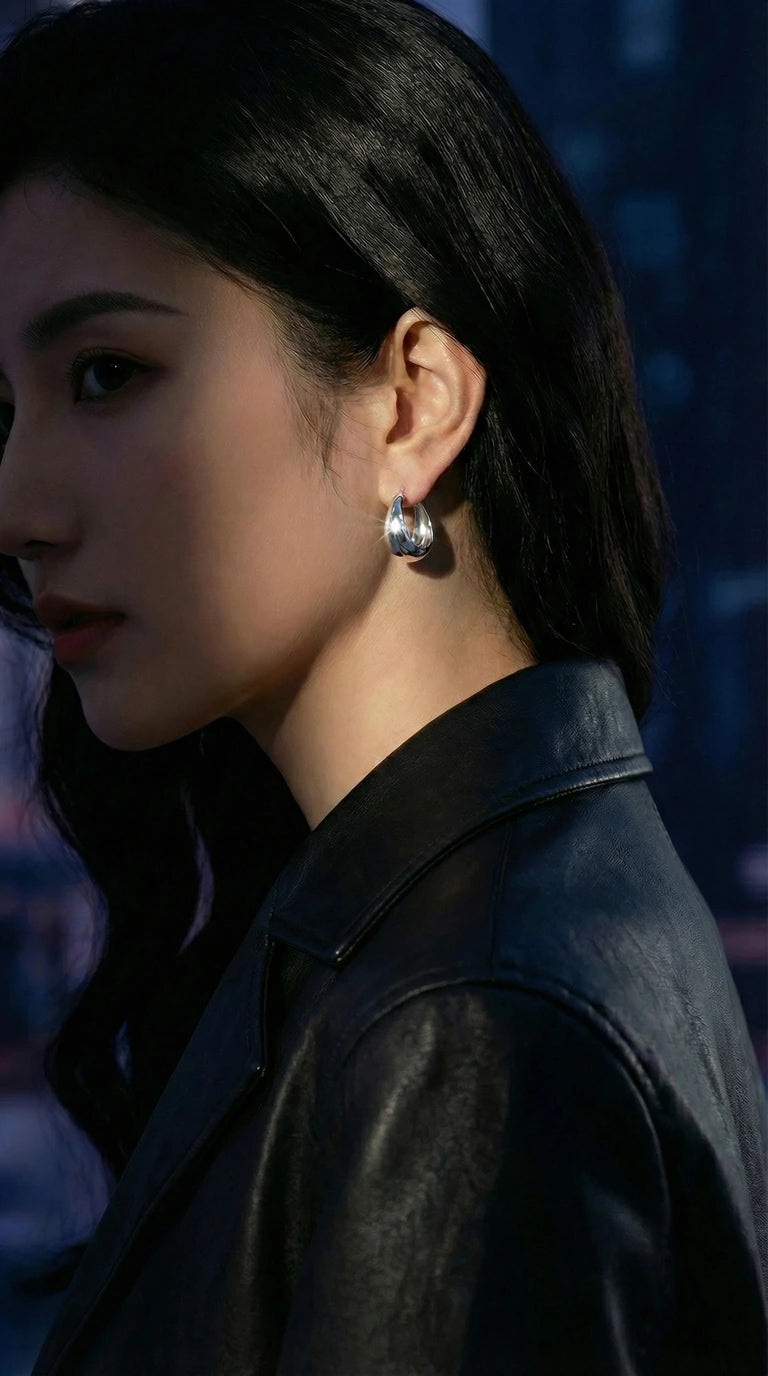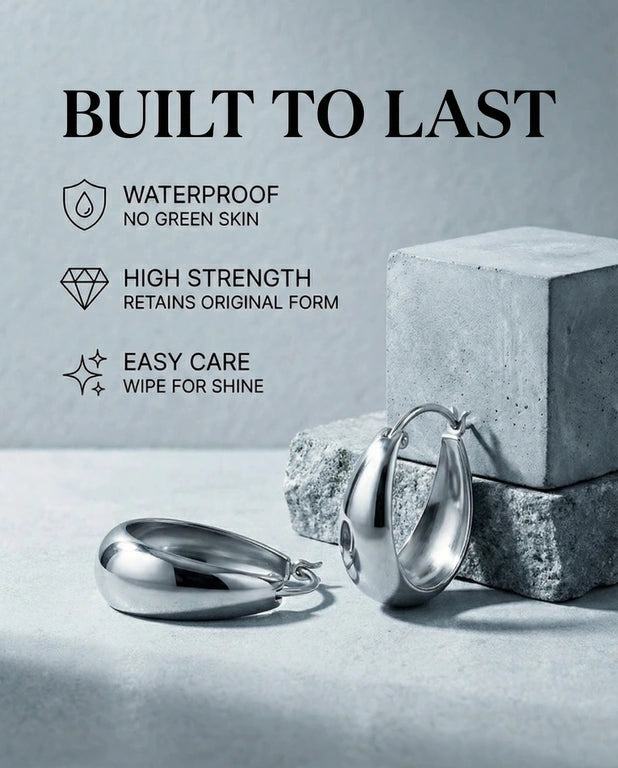 Fluid, tapered huggie hoops with a rounded, mirror-polished curve—quietly bold.