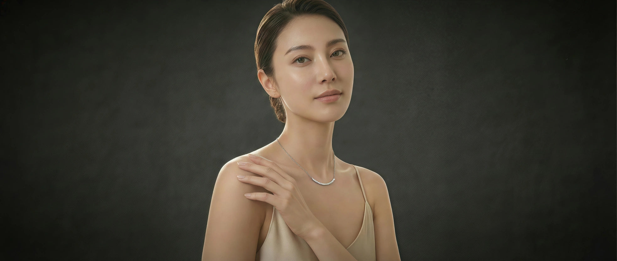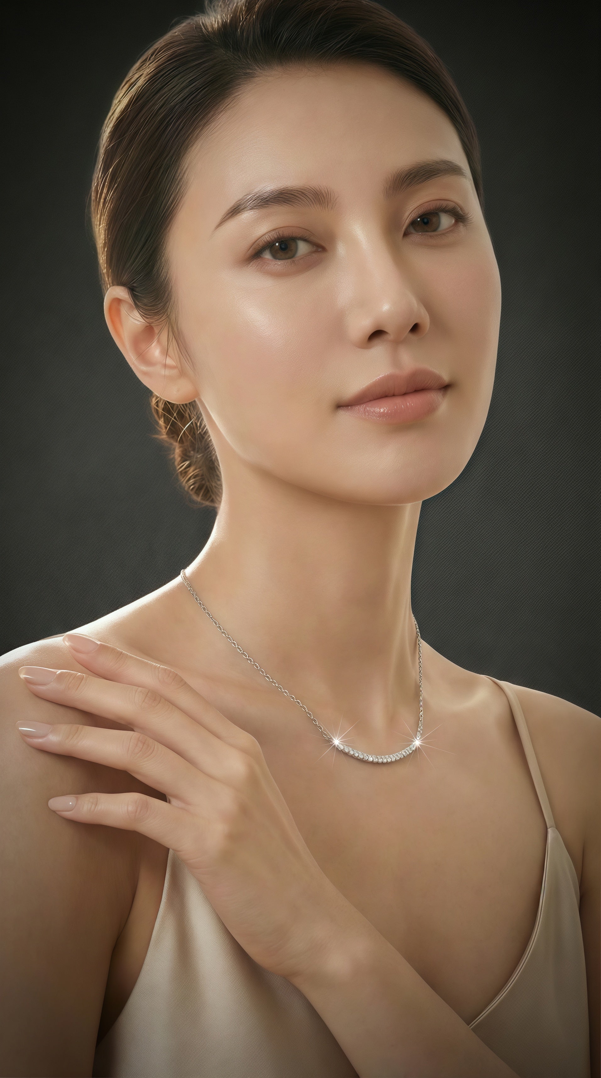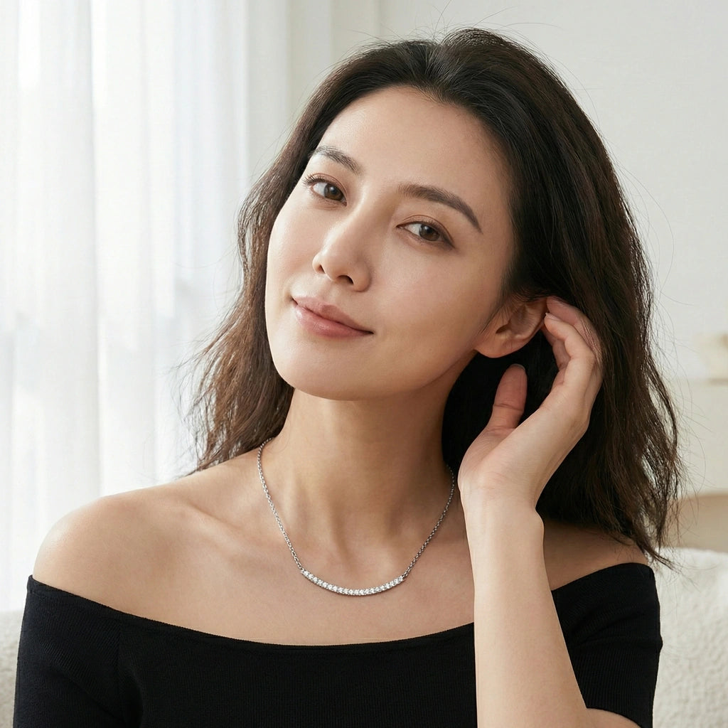A slender pavé arc suspended on a fine chain—clean, modern, unmistakably refined.