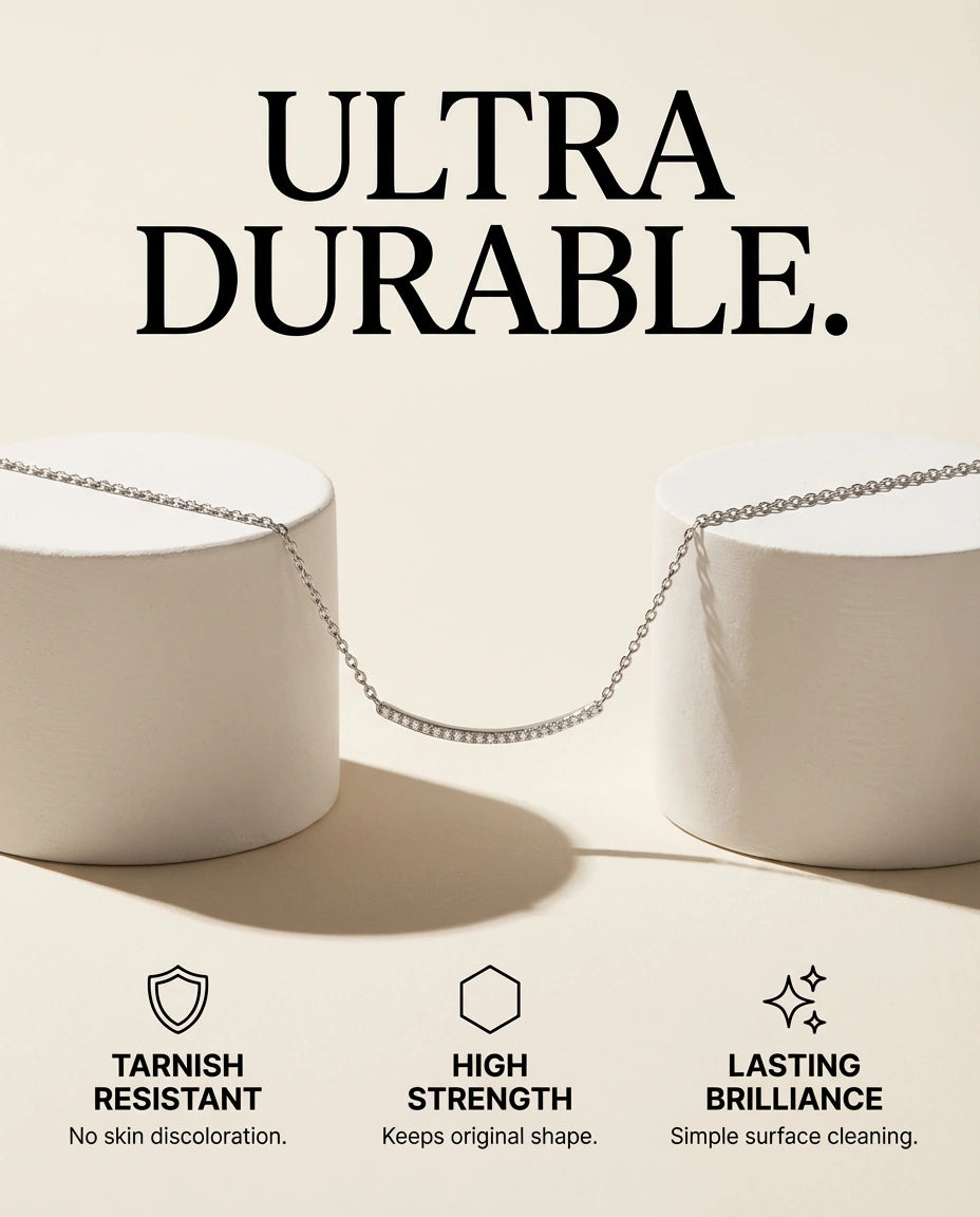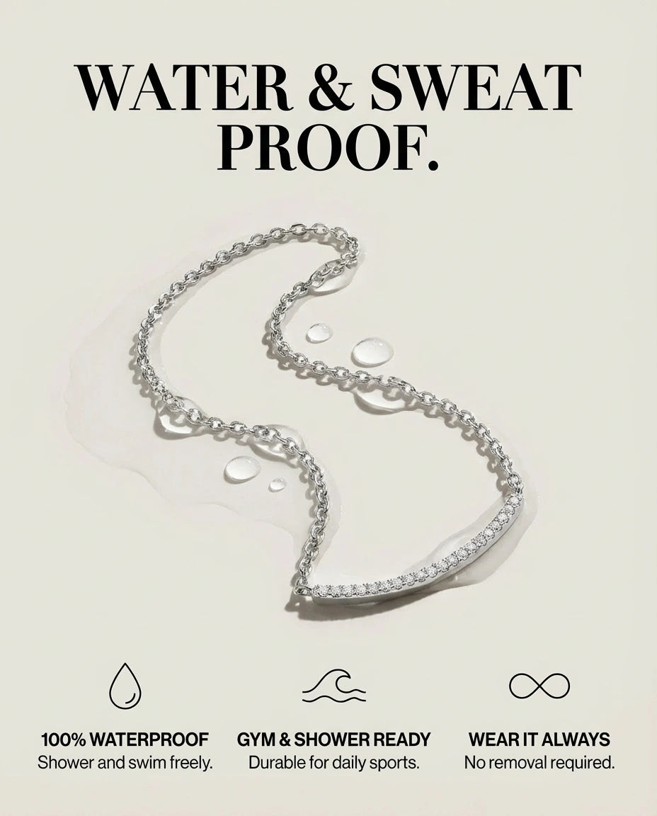 Non‑tarnish and water-ready, crafted to hold its crisp shine through seasons of wear.