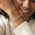 A slender tennis row of luminous stones that traces the wrist with understated glow.